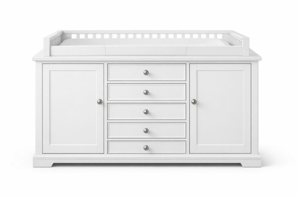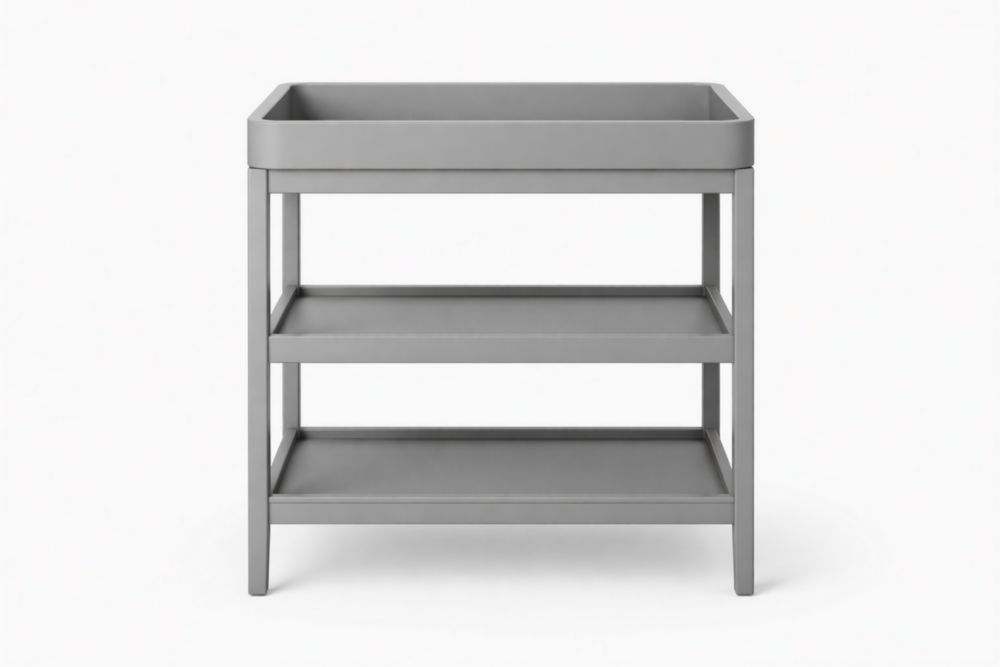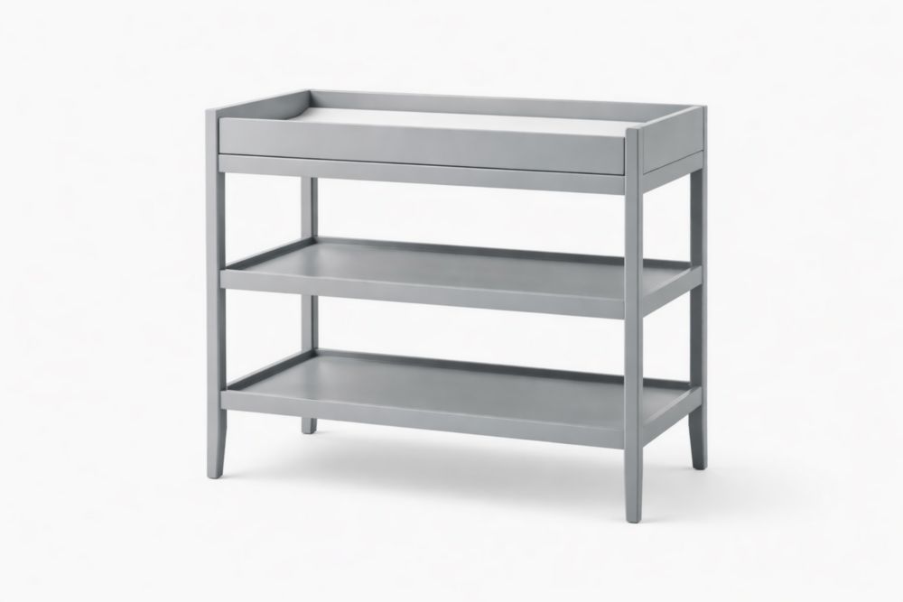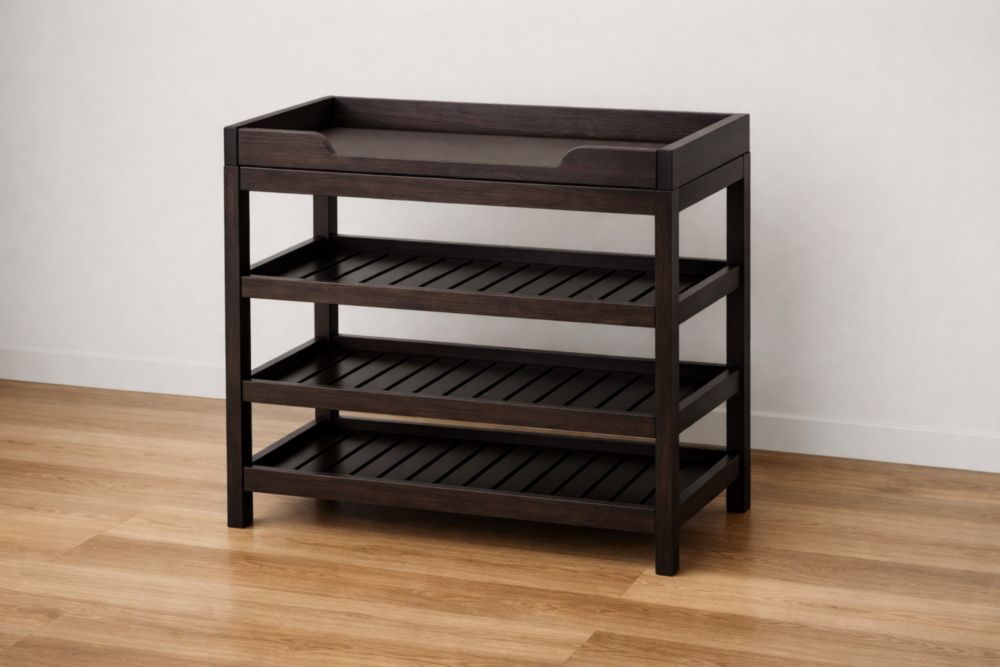Material: The changing table is crafted from solid pine wood with a dark brown finish.