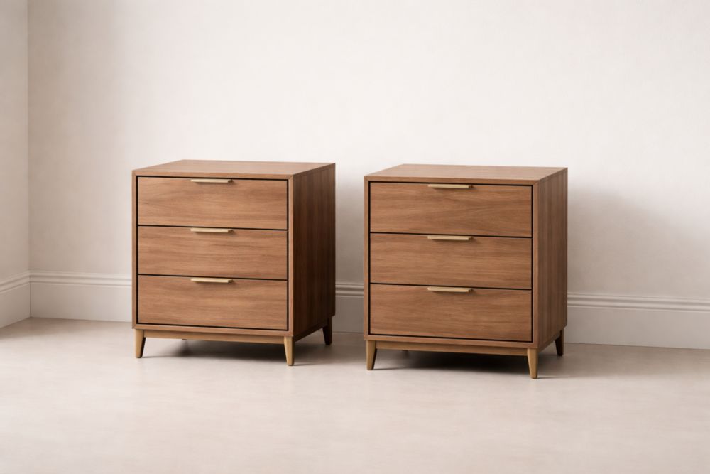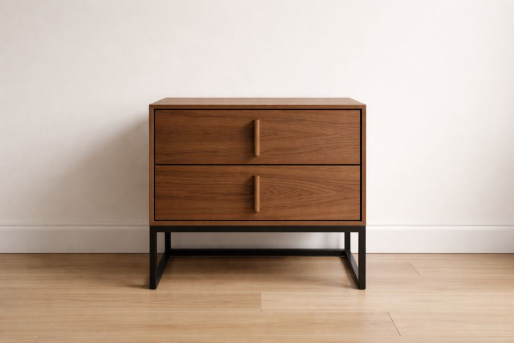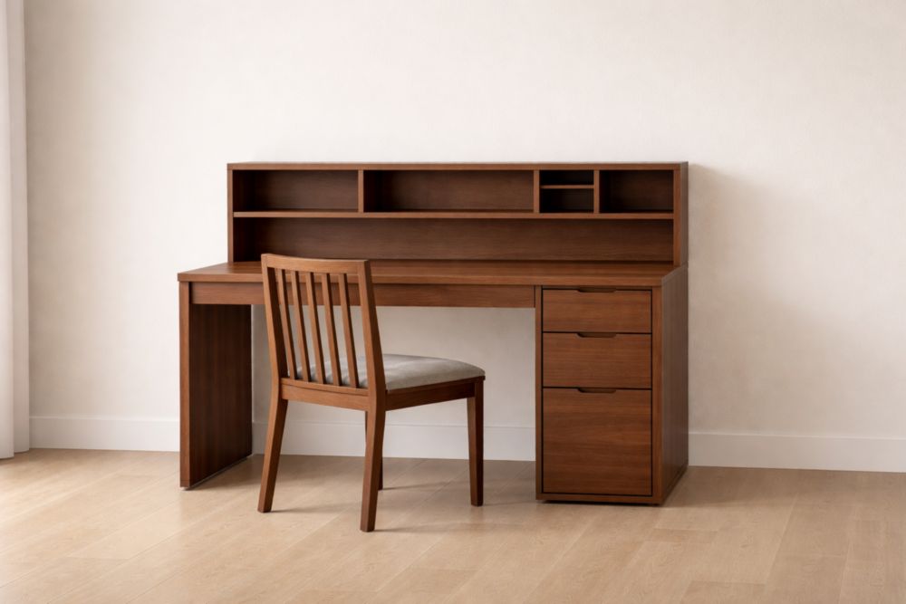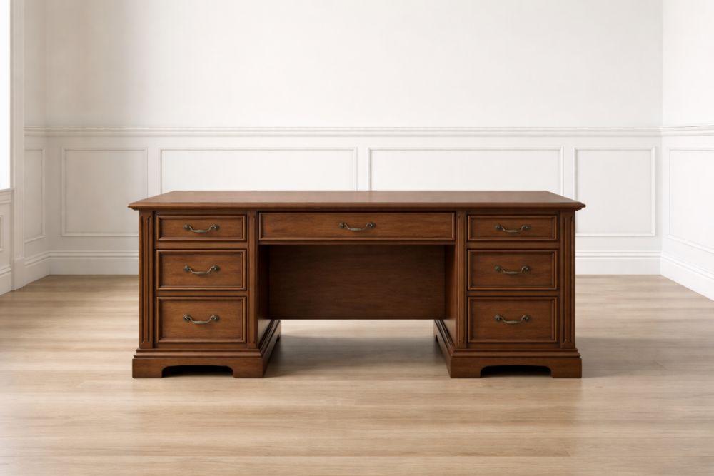 Design & Structure: Freestanding structure with storage including five drawers and two cabinets